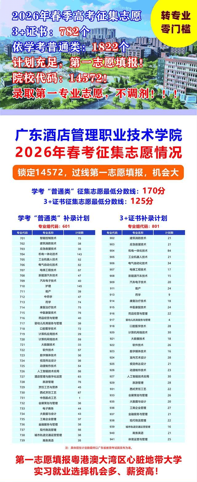 春招征集志愿:过线第一志愿填广东酒店管理职业技术学院可上岸