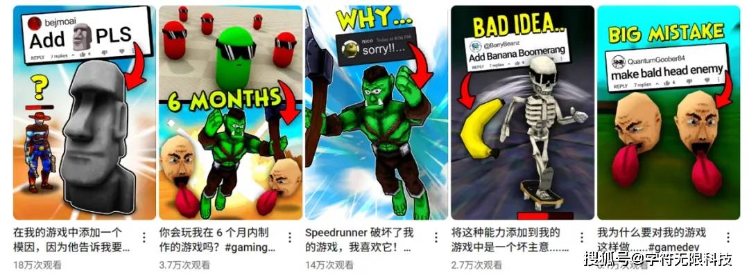 其中一条今年2月发布的视频,详细秀了他在Unity引擎中测试“3000个豆子追赶玩家”玩法原型的开发过程,期间经历了数次引擎崩溃、重写代码,过程非常搞笑,而这条视频的播放量高达9.8万次,不仅体现了游戏本身有趣,其实游戏开发过程同样非常逗比,吸引了不少人围观,也积累了最初对游戏感兴趣的玩家。