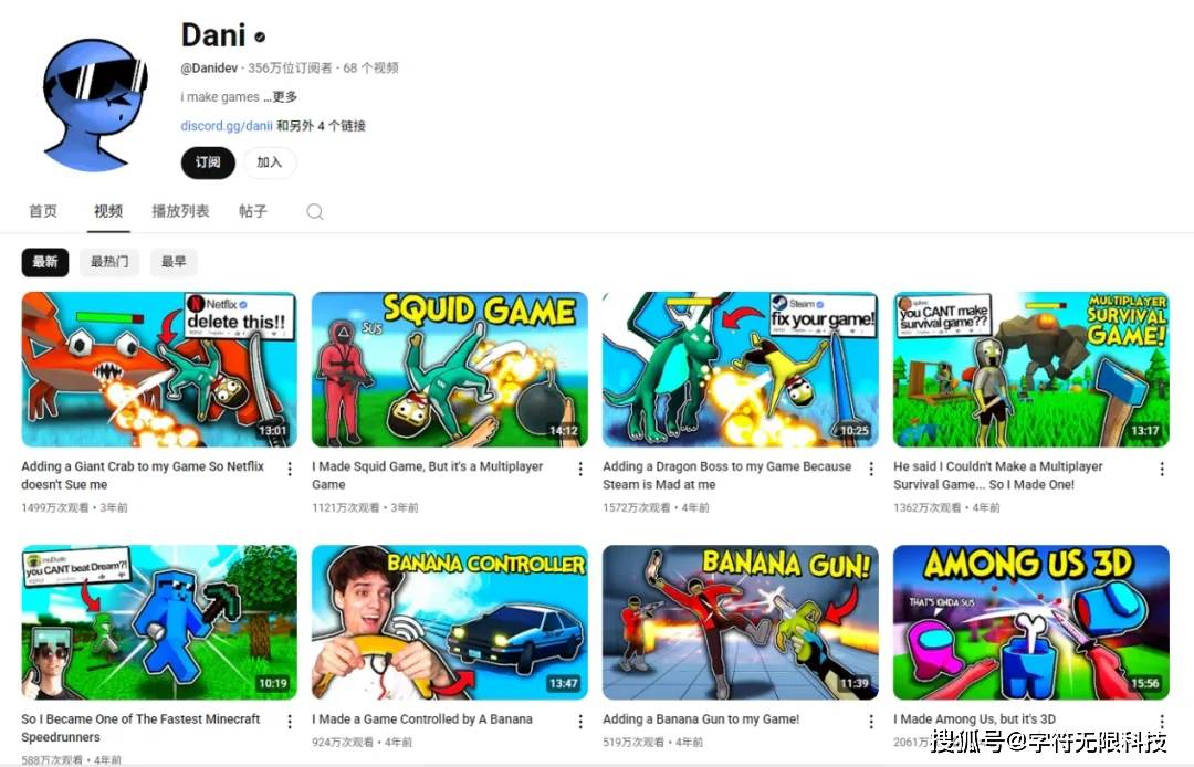 Danidev(简称Dani)是一位主要使用C# 编程语言在Unity引擎中开发游戏的YouTube博主,以其独特的抽象游戏开发过程视频在平台上吸引了高达356万的粉丝,是名副其实的行业大V。