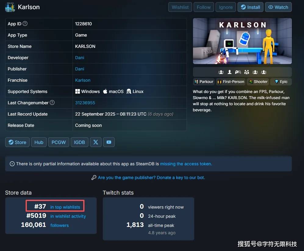 (《Karlson》在Steam愿望单排名达到了37名,可见Dani在海外的影响力)