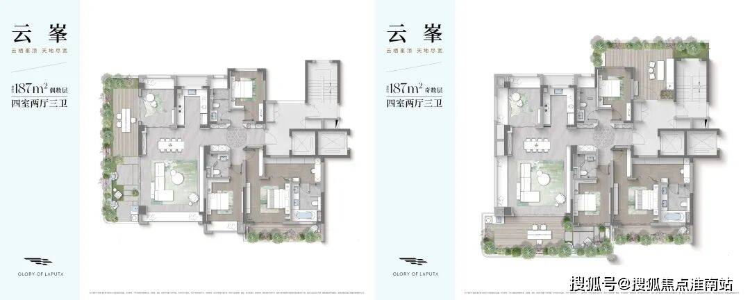 •187㎡ 云峯 四室两厅三卫 奇数层:使用率约123% 偶数层:使用率约111%