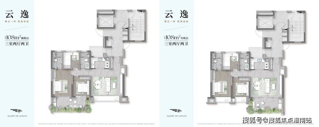 •108㎡ 云逸 三室两厅两卫 奇数层:使用率约95% 偶数层:使用率约95%