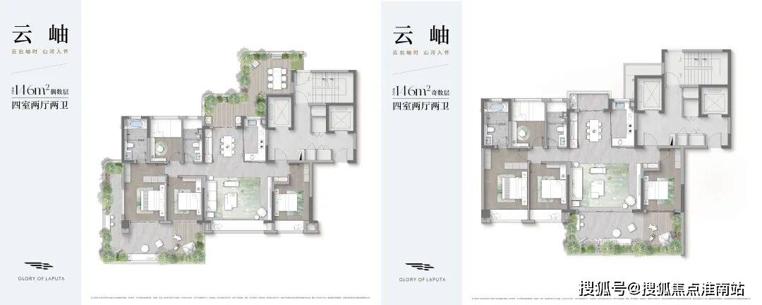 •146㎡ 云岫 四室两厅两卫 奇数层:使用率约106% 偶数层:使用率约123%