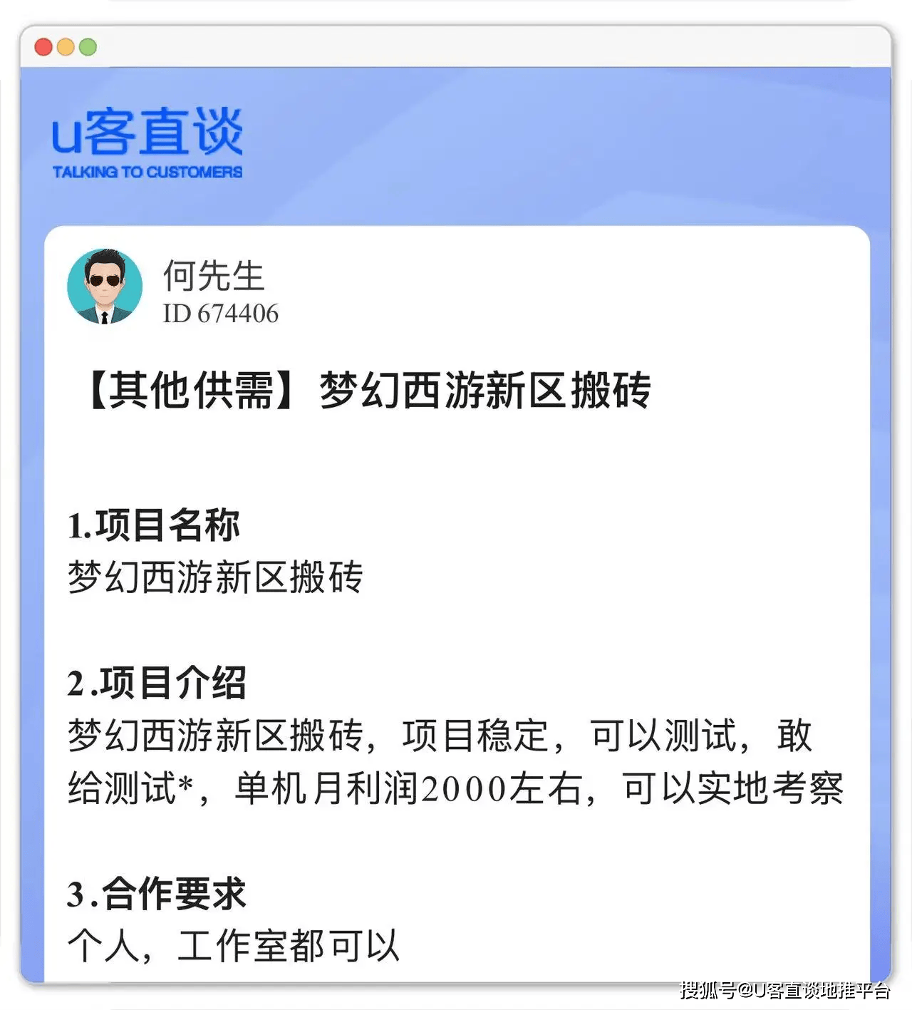 正如U客直谈,作为国内规模较大的游戏搬砖工作室招商平台,这里就汇集了大量搬砖团队发布的游戏项目与资源信息。通过这些真实的一线动态,我们得以窥见哪些游戏才是真正值得投入的“搬砖圣地”。