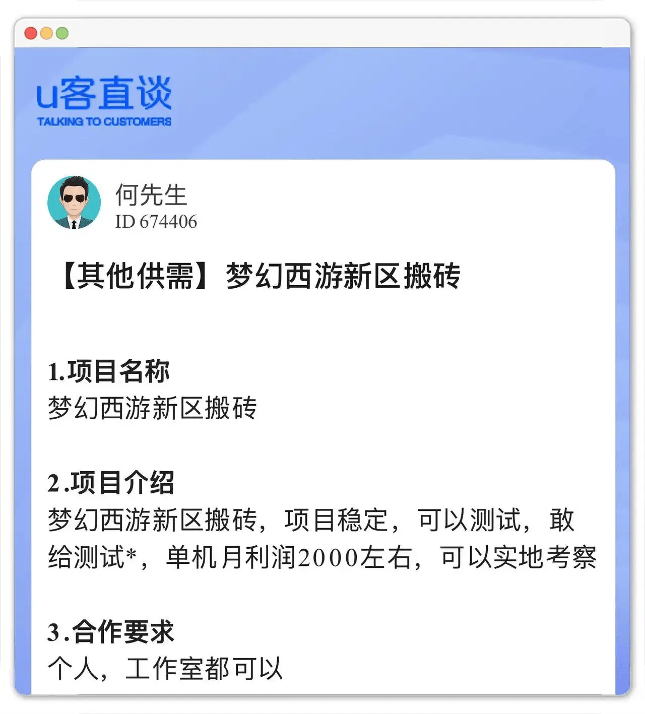 在U客直谈上,你可以找到不同游戏的行情信息、交易对象,甚至学习具体的搬砖技巧。对于想认真投入搬砖的玩家来说,它更像一个“辅助工具”,帮你了解市场、减少信息差。这也是为什么它常出现在打金搬砖赚钱的十大网络游戏排行榜里。