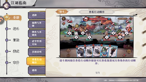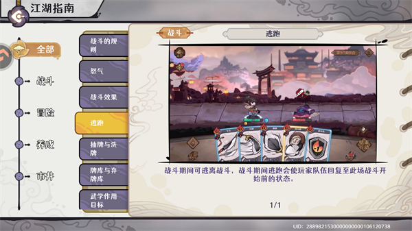 通过布阵携带的卡牌、局内临时获得的卡牌构筑成战斗中的牌库。玩家行动期间使用的武学卡牌会进入弃牌库。