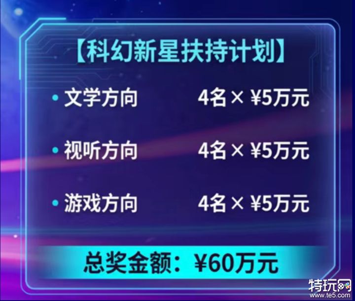 赛道及奖金设置科幻新星扶持计划总奖金为40万元,共评选8名。视听方向:主要面向尚未正式上映的影视作品剧本及项目书、沉浸式与互动叙事项目项目书、有声读物项目剧本及项目书及其他科幻视听方向内容,有完整剧本及策划书,已备案项目优先。游戏方向:主要面向尚未正式上线的原创游戏项目,重点扶持在玩法机制、叙事表达、美术风格或技术应用等方面具有创新探索价值的作品。