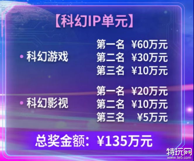 科幻IP参赛单元设置科幻游戏、科幻影视2个赛道,总奖金135万元。