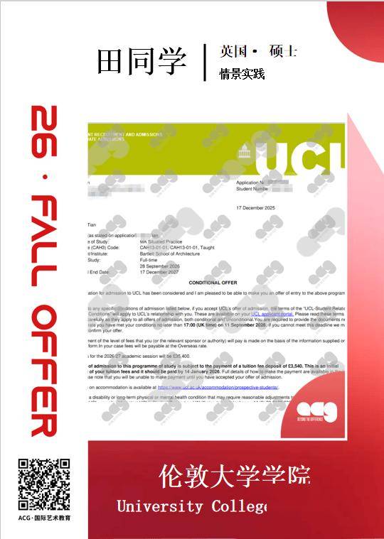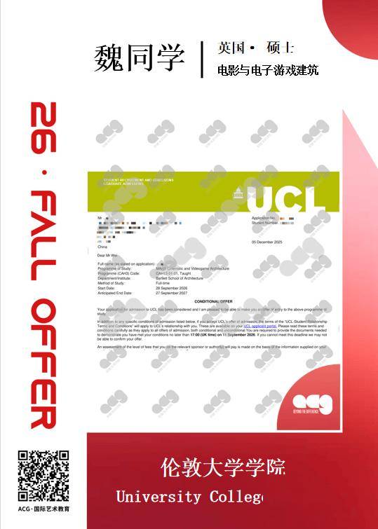 双非背景同学无需担心,UCL是G5中对双非最友好的院校之一,更看重作品潜力和跨学科能力,做好作品集就有机会拿到offer。