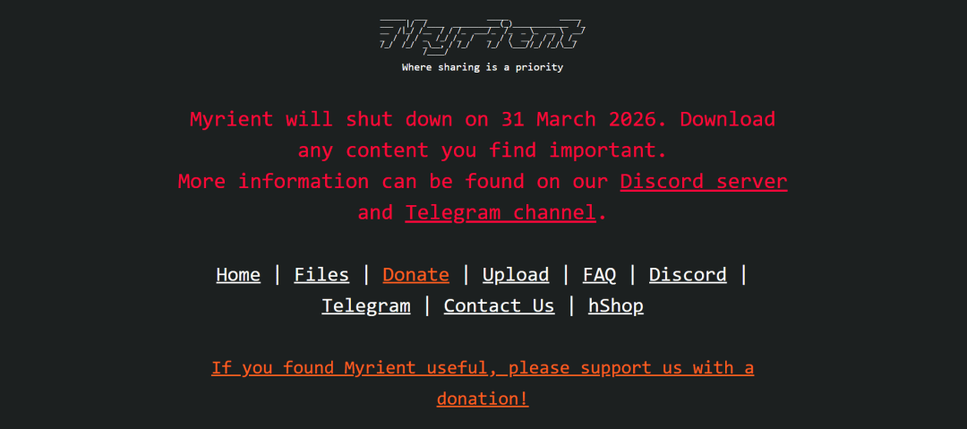 3 月 2 日,据媒体 Game Rant 报道,专注于电子游戏保存的在线档案库 Myrient 宣布将于 2026 年 3 月 31 日正式关闭。成立于 2022 年的 Myrient 旨在通过集中存档的方式保存旧时代电子游戏文化,向全球玩家提供无需注册即可下载的复古游戏档案,同时也在社区用户的互助下不断扩大档案规模,被认为是互联网上规模较大的复古游戏资源档案之一。