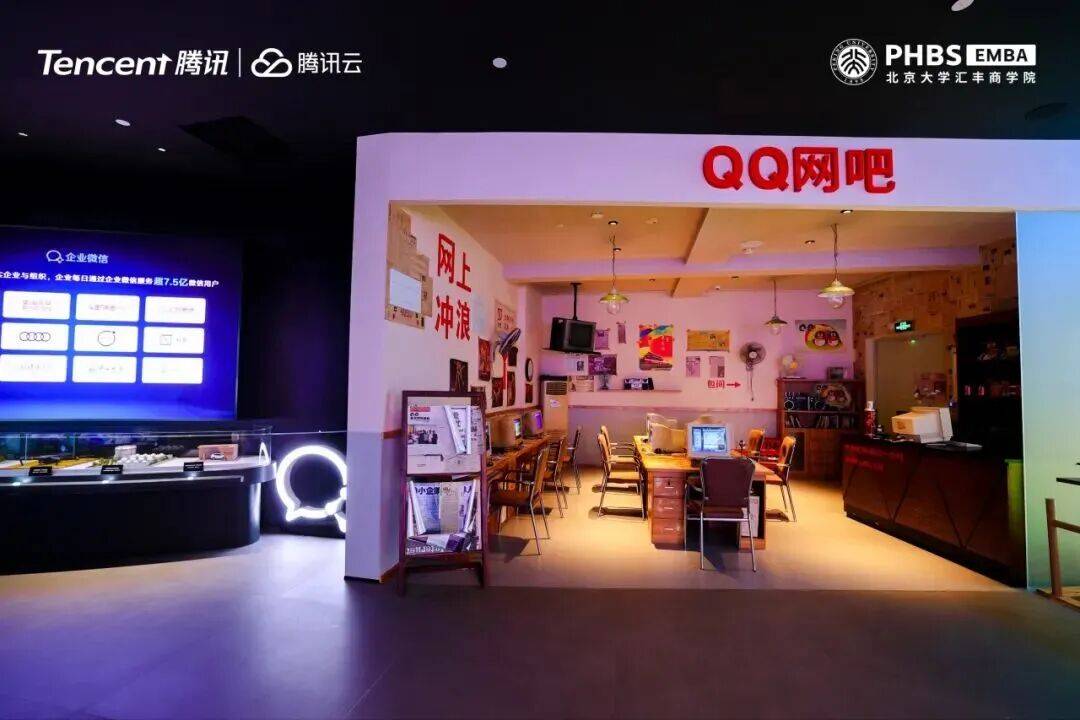 展厅复原了QQ网吧经典场景,还原了互联网早期的用户记忆,从初代QQ界面到微信小程序、视频号,展现了腾讯消费互联网业务的迭代历程。微信小程序首创“扫码即用、用完即走”的服务模式,助力政务服务便民化;视频号成为权威资讯传播阵地与创业新平台,为返乡青年提供直播带货渠道,激活个体创业活力。